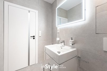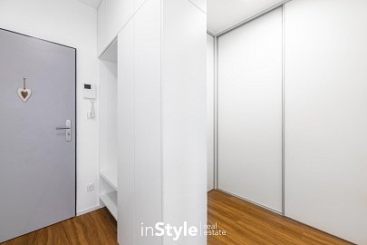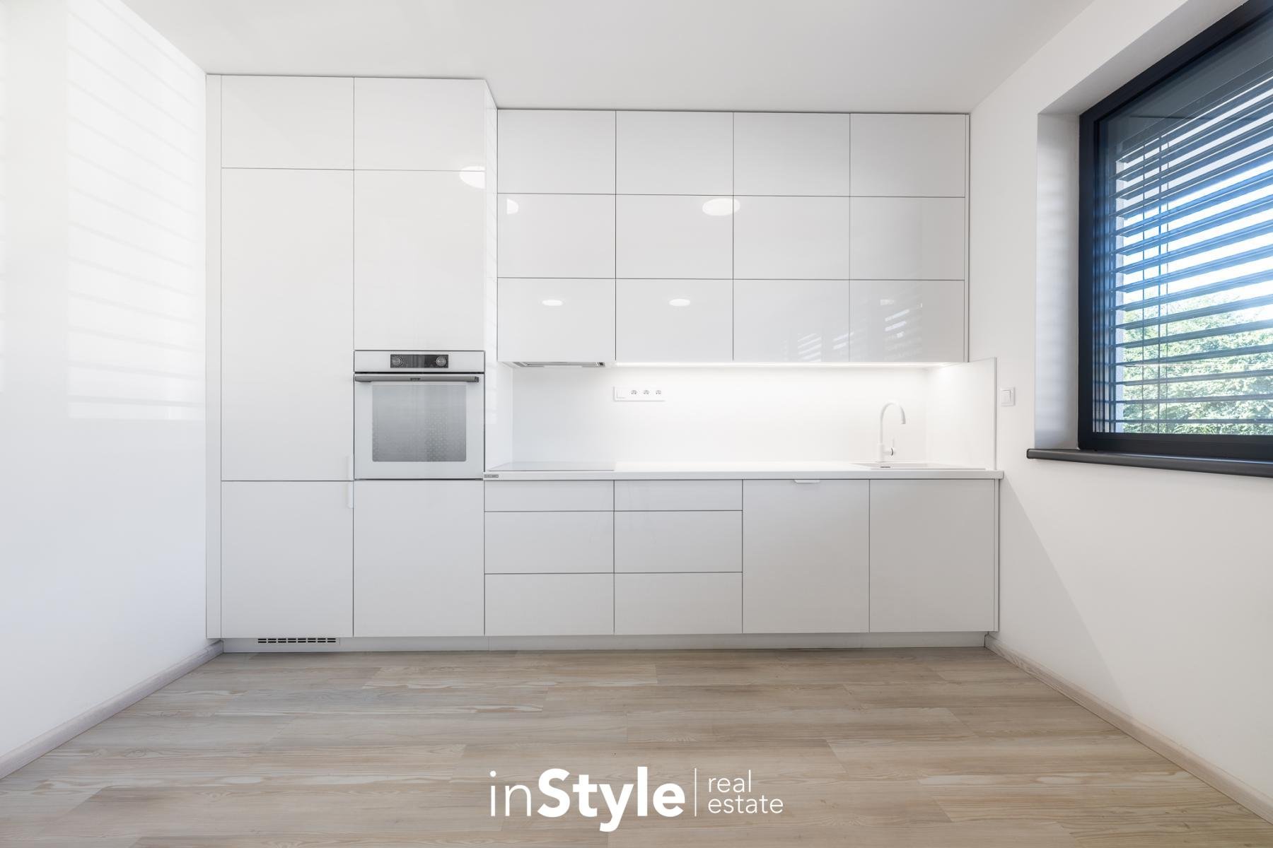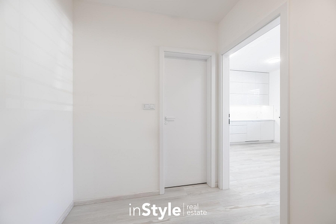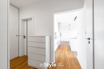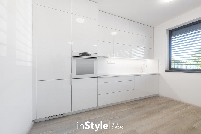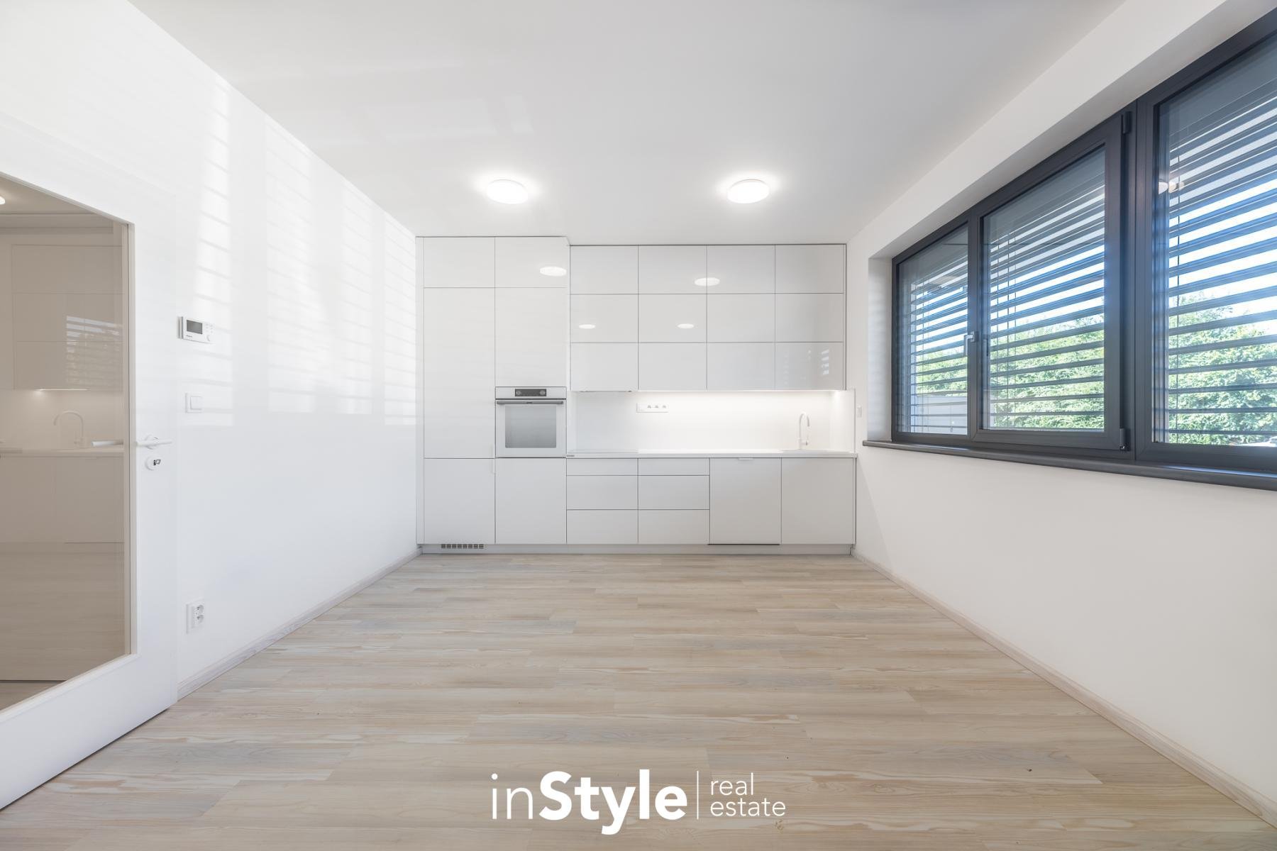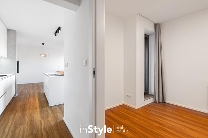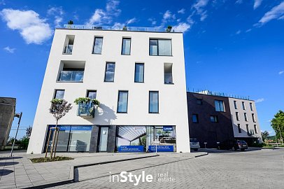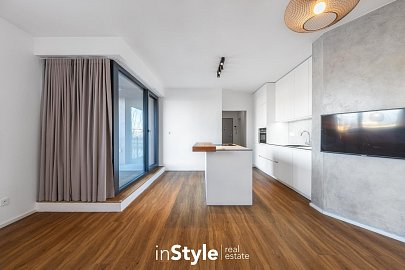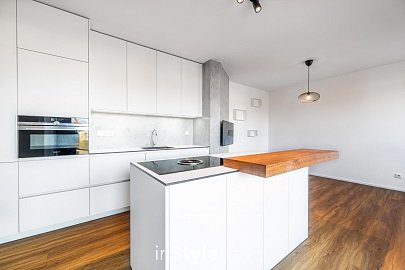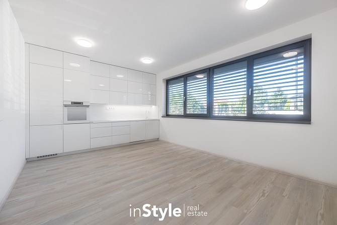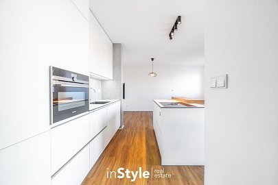 Byt nabízí podlahovou plochu 31,60 m2 a je vybaven designovou kuchyňskou linkou na míru od studia CASA GREY v ceně 200.000,- Kč s vestavnými spotřebiči GORENJE (lednice s mrazákem, myčka, dřez s baterií, indukční varná deska, digestoř a pečící trouba) a venkovními elektricky ovládanými žaluziemi. K bytu je dále podmínkou dokoupit vyhrazeného venkovní parkovací místo v hodnotě 350.000,- Kč.
