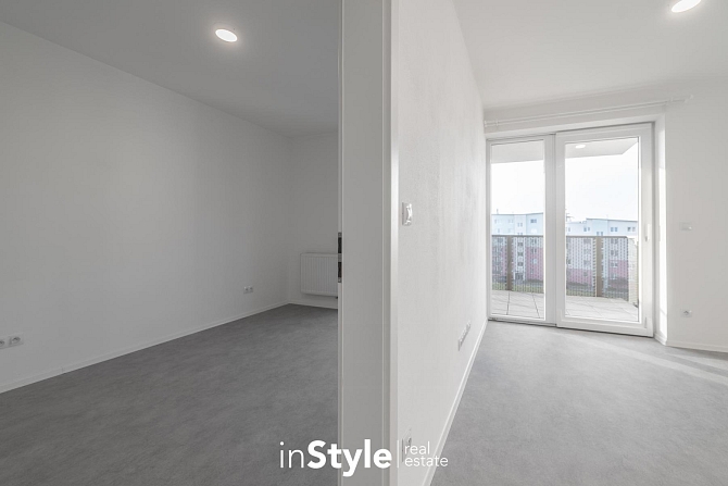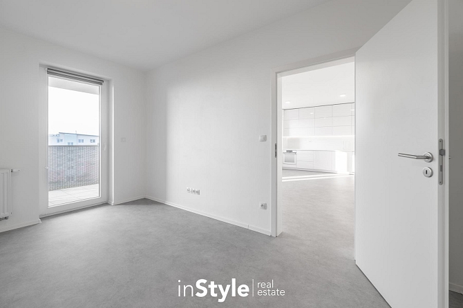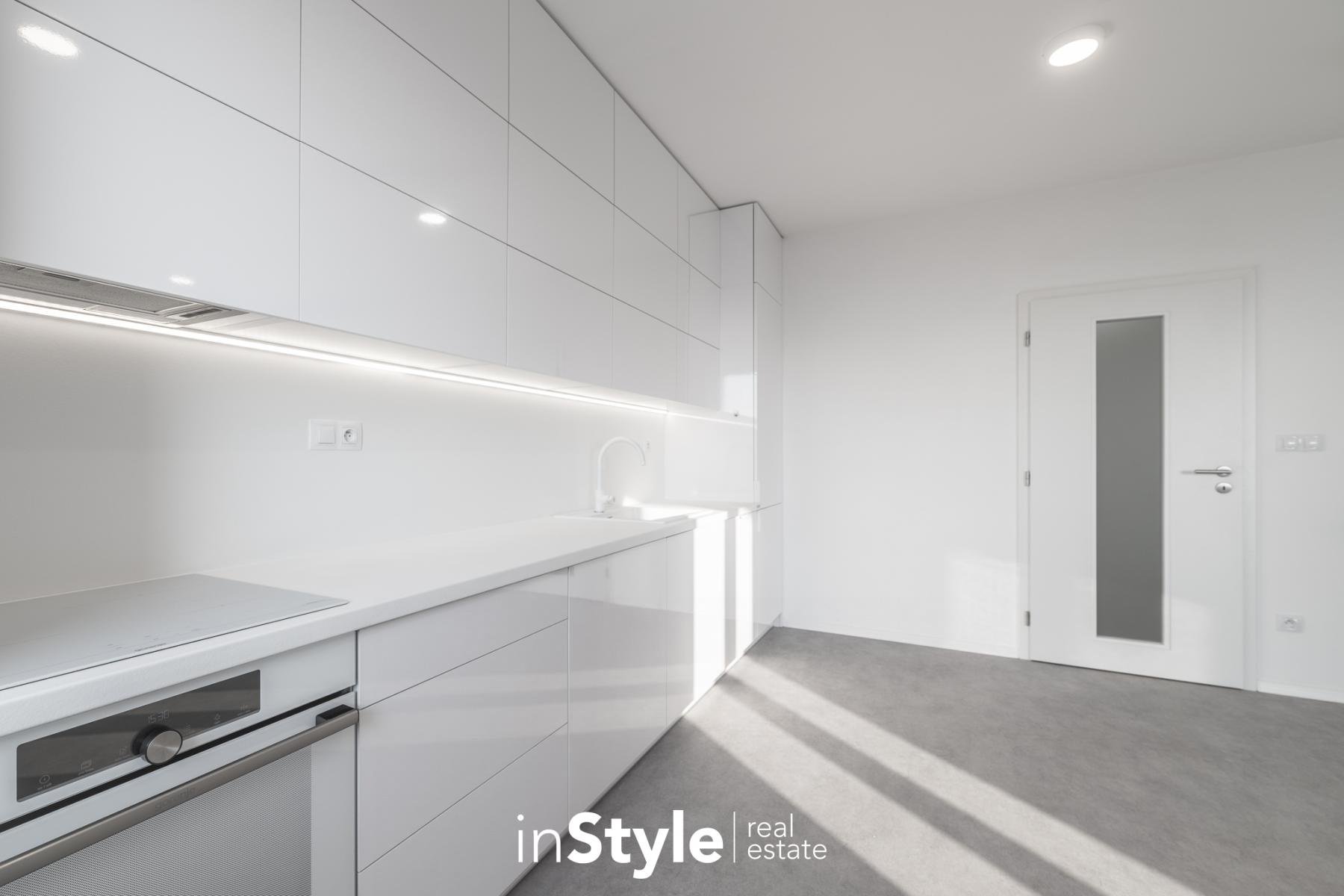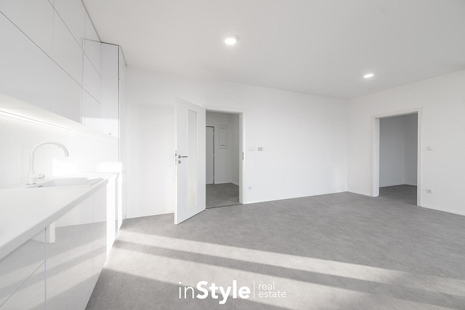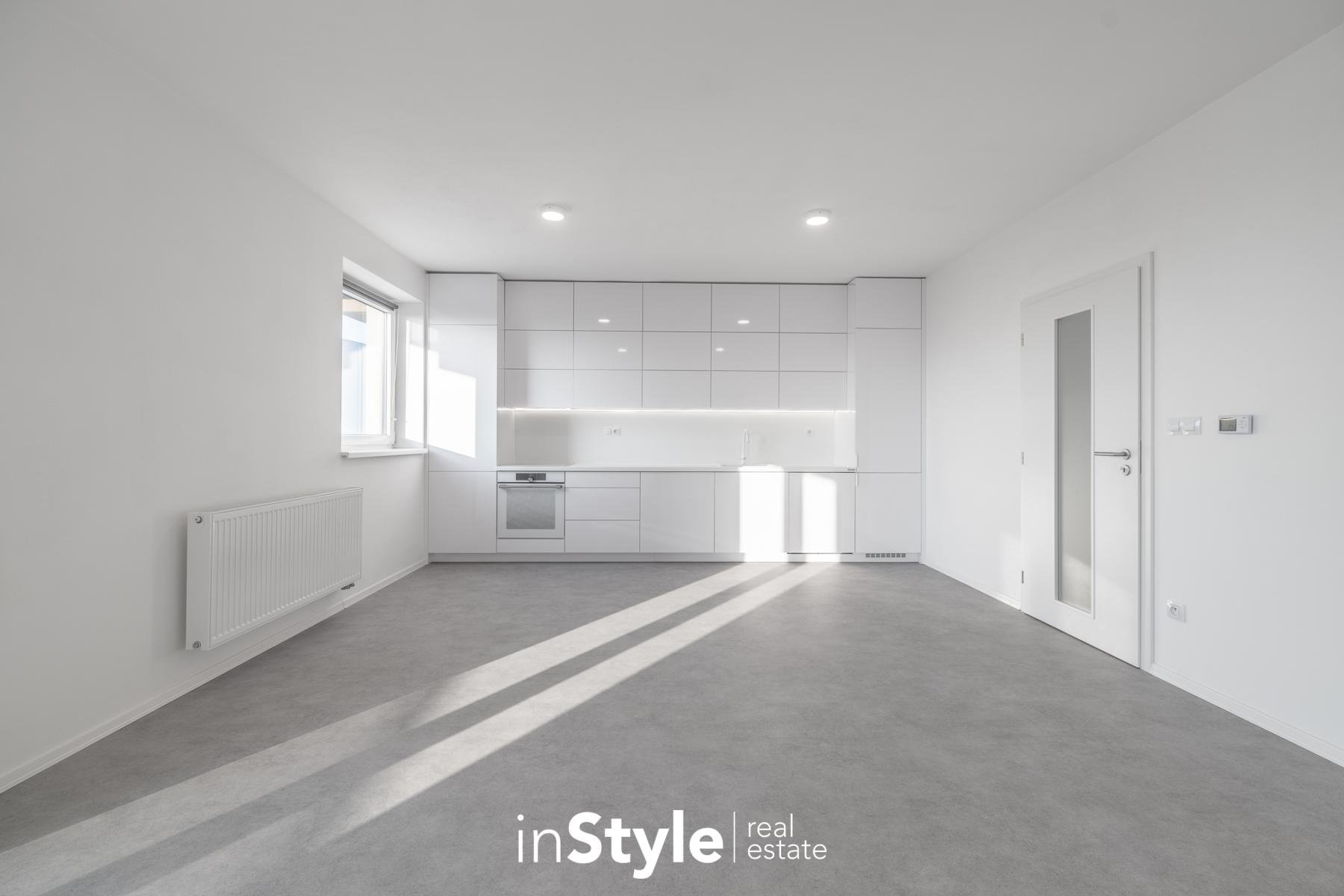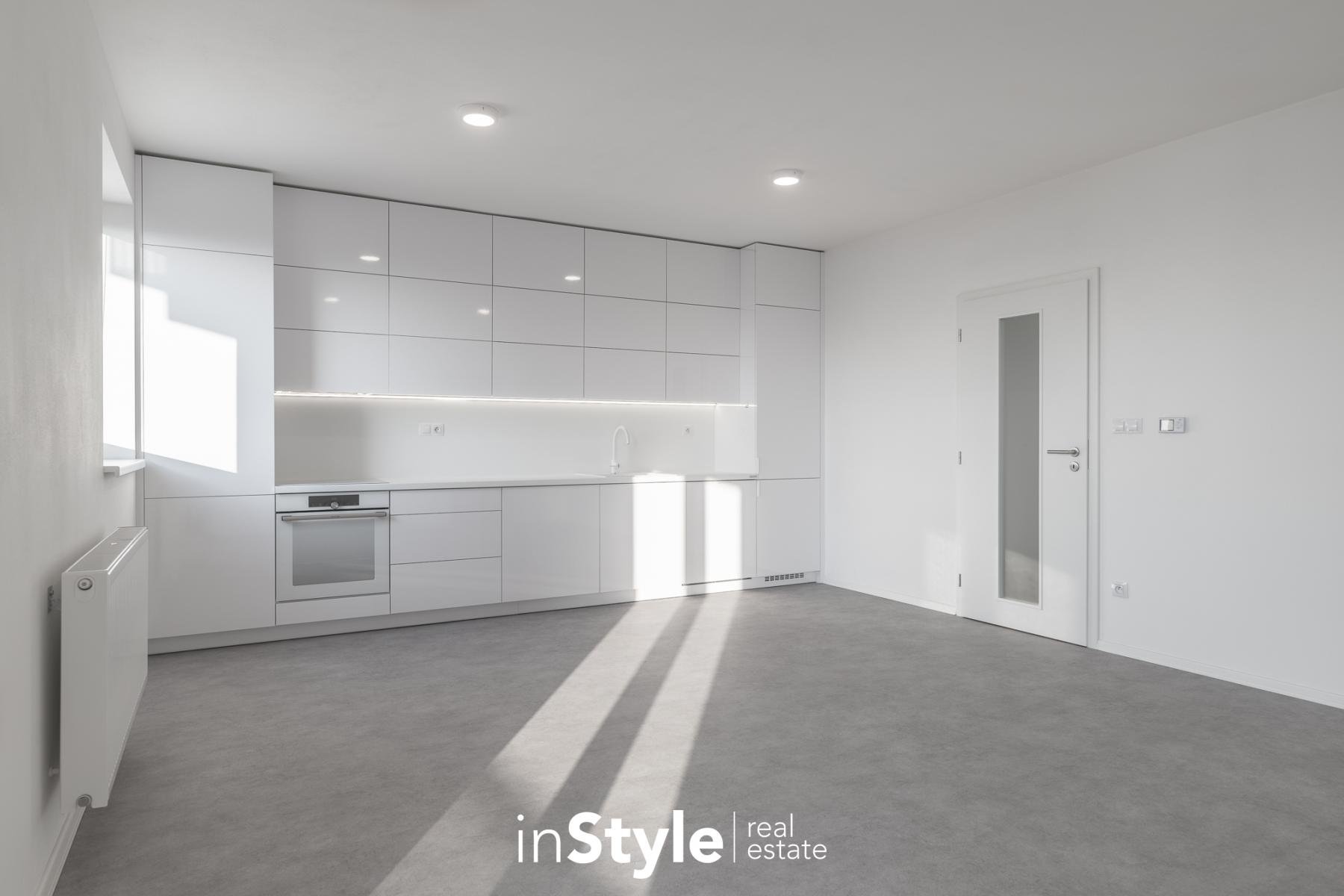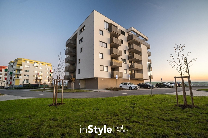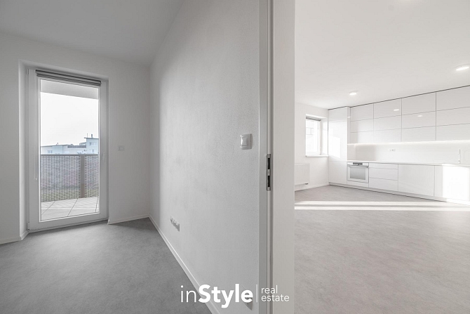 Jednotka nabízí designovou kuchyňskou linku s vestavnými spotřebiči GORENJE (lednice, myčka, dřez s baterií, indukční varná deska, digestoř a pečící trouba), osvětlení a nadstandardní stavební materiály. Součástí bytového domu je samozřejmě výtah, kolárna a kompletní bezbariérový přístup.