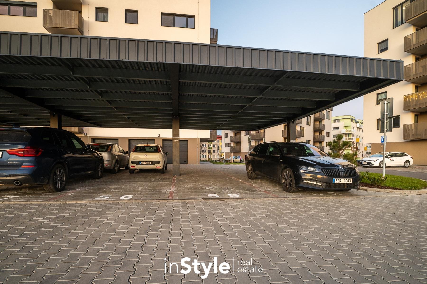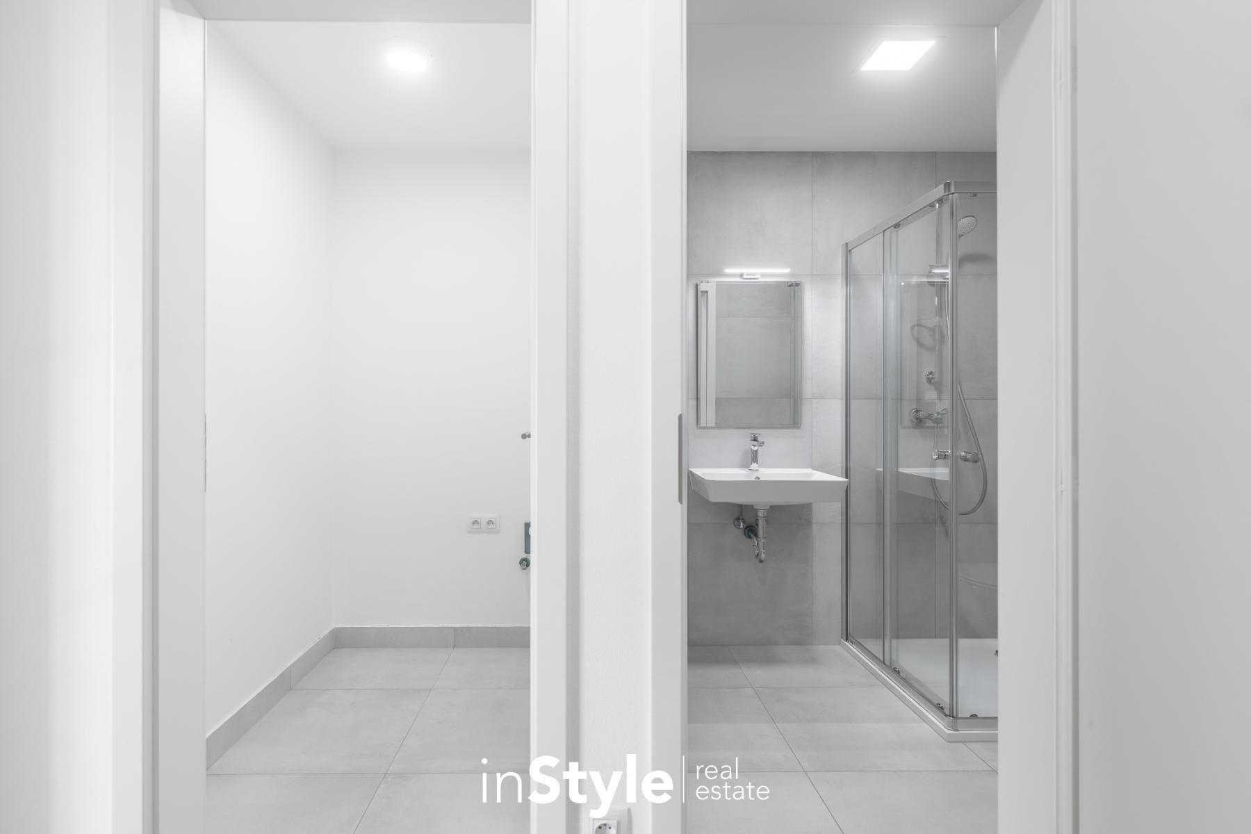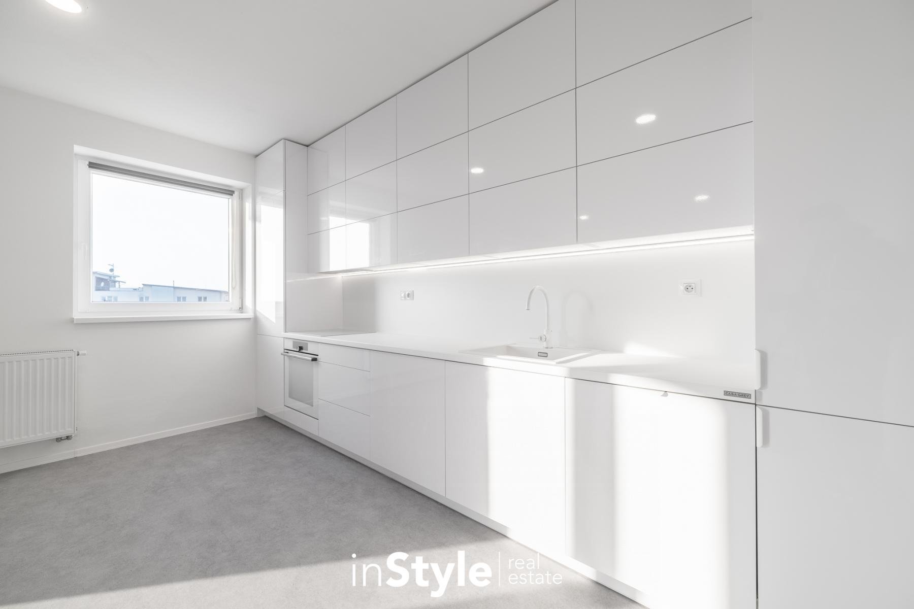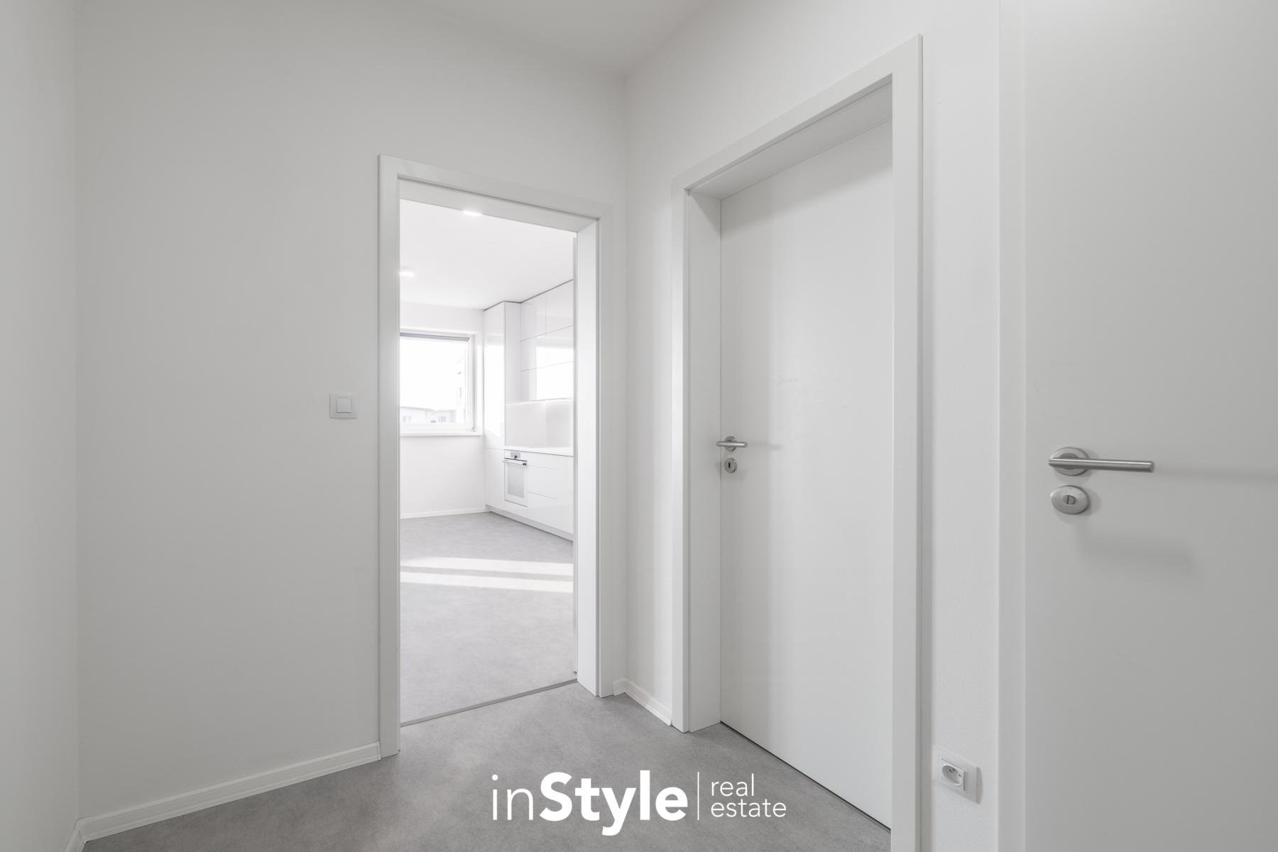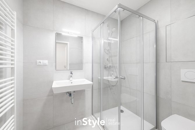 Jednotka nabízí designovou kuchyňskou linku s vestavnými spotřebiči GORENJE (lednice, myčka, dřez s baterií, indukční varná deska, digestoř a pečící trouba), osvětlení a nadstandardní stavební materiály. Součástí bytového domu je samozřejmě výtah, kolárna a kompletní bezbariérový přístup.