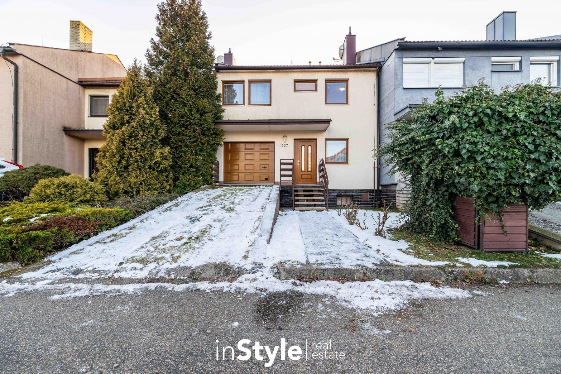 Dům stojí na pozemku o celkové výměře 381 m2 a celkem nabízí 195 m2 užitné plochy. V přízemí domu máte k dispozici vstupní chodbu s halou, zmíněnou garáž, první koupelnu se sprchovým koutem, dva samostatné pokoje a knihovnu s pracovnou. Ve druhém podlaží je centrální chodba, kuchyně s jídelnou, obývací pokoj, hlavní ložnice, dětský pokoj a druhá koupelna s vanou. Co se týče parkování, jedno auto můžete zaparkovat v manuálně otevíratelné garáži a druhé klidně v nájezdu přímo před domem. A pokud byste potřebovali aut zaparkovat víc, přímo před domem se nachází veřejné parkoviště.
