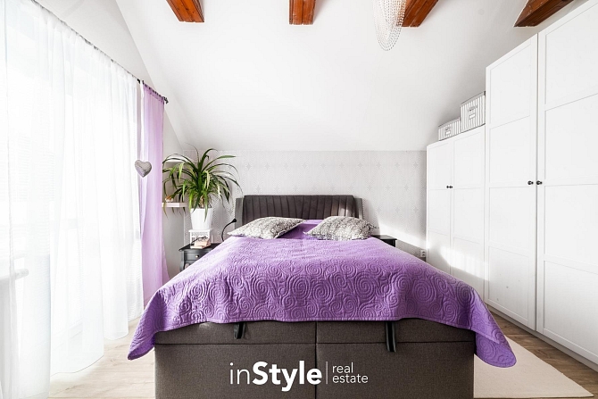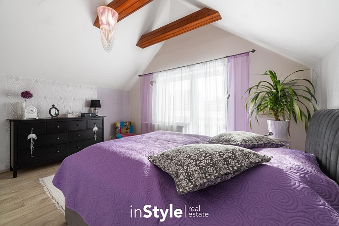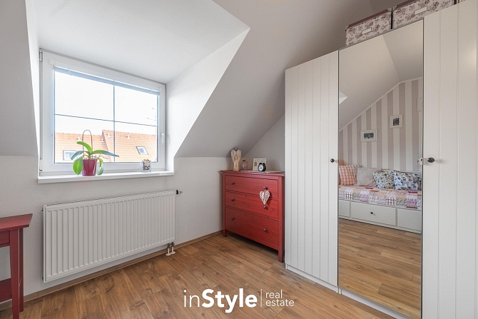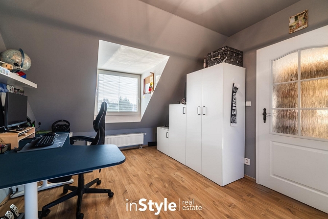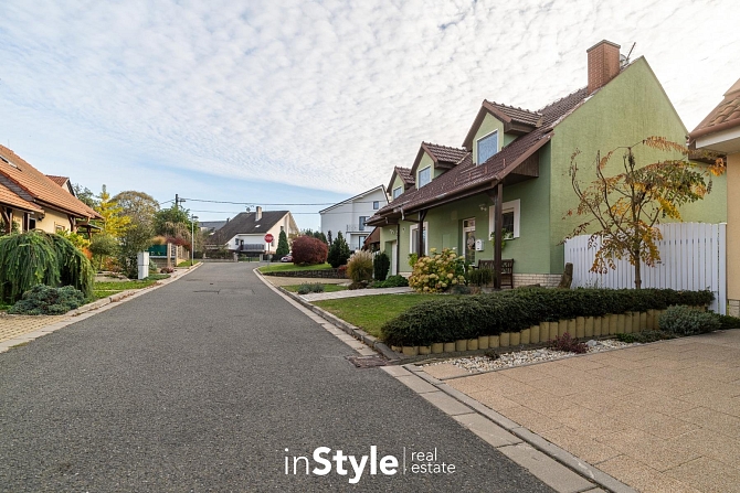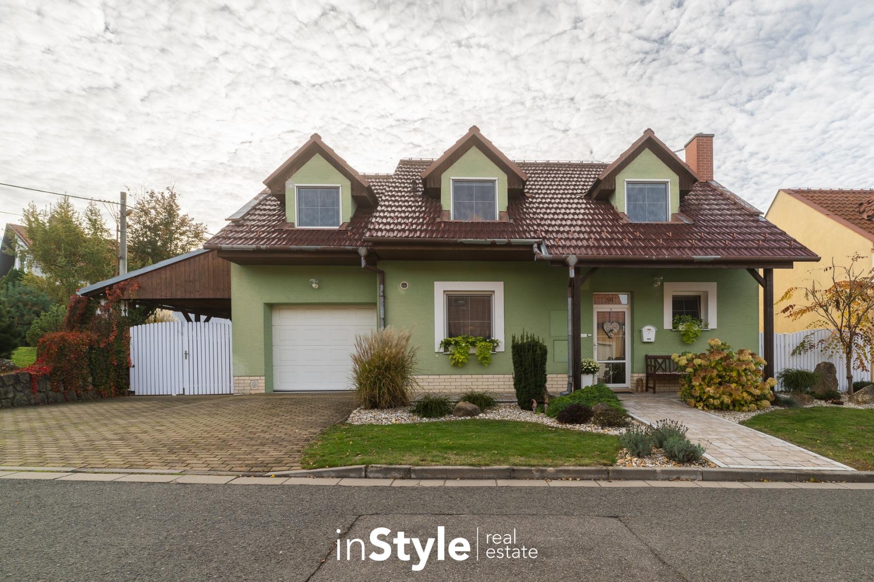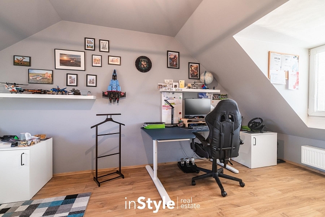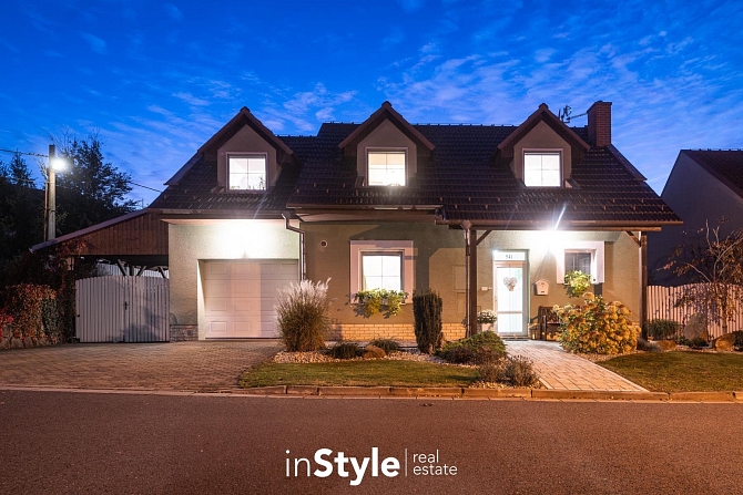 Kompaktní samostatně stojící dům, ve kterém naleznete dostatek prostoru pro celou rodinu. Tři ložnice, pracovna, dvě koupelny, úklidová místnost, garáž, přístřešek pro parkování a především kuchyňské zázemí s obývacím pokojem, který není jen nudnou klasikou. Díky otevřenému schodišti do podkroví vznikl prostor, který je skutečně vzdušný. Velká okna směrem do zahrady se pak postarala o hromadu světla. A právě výhled do zahrady bude jistě vašim oblíbeným, protože je na co koukat.