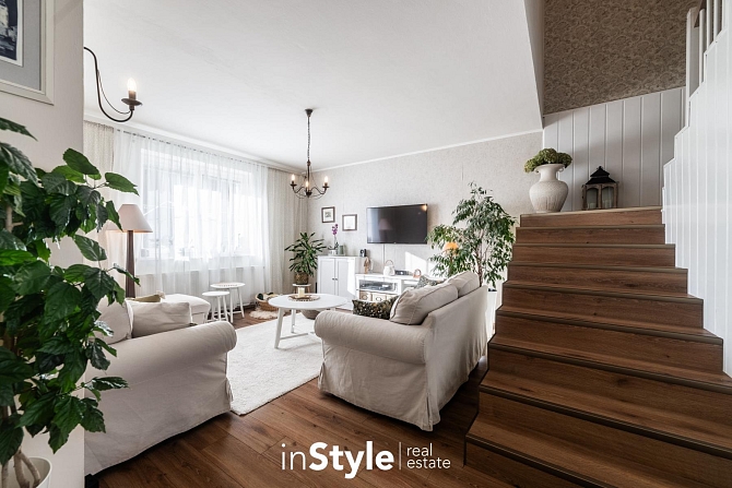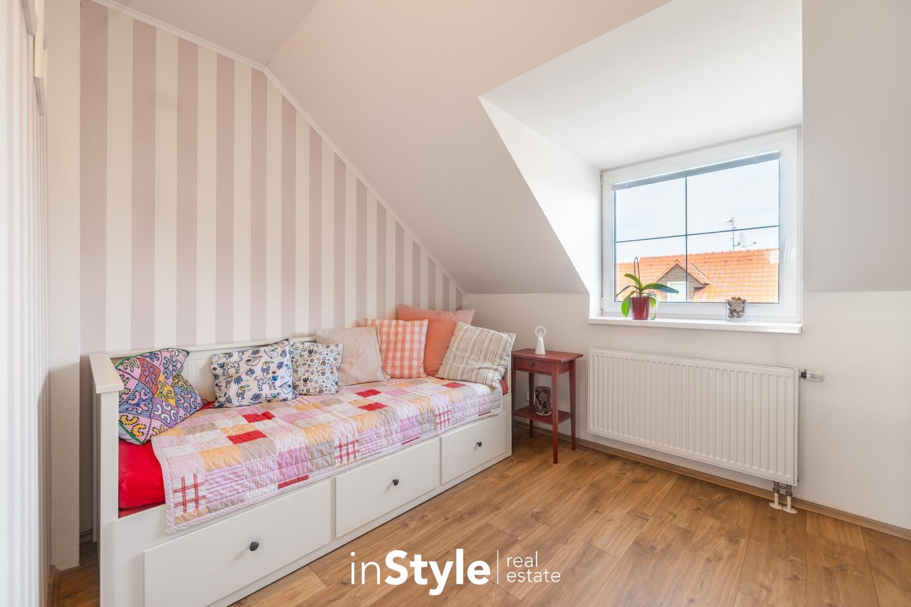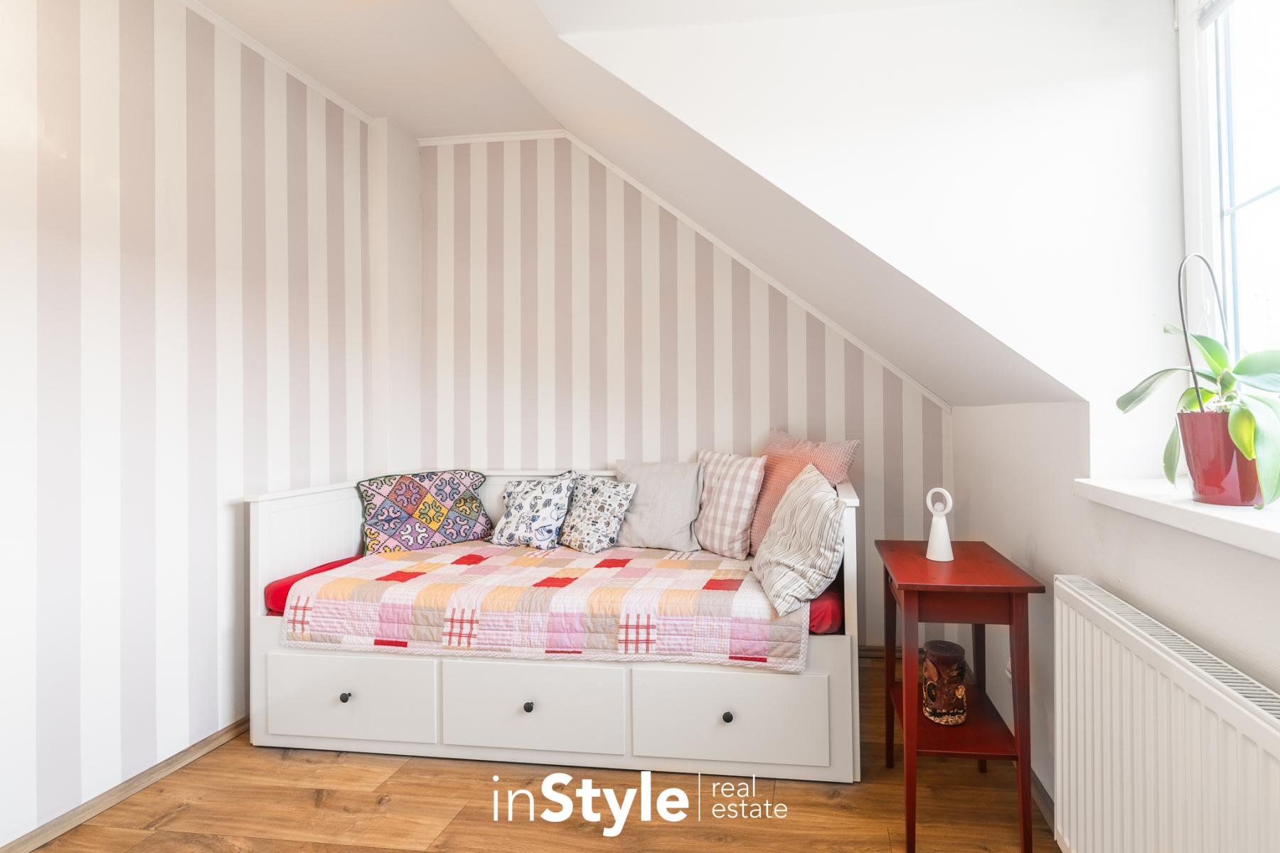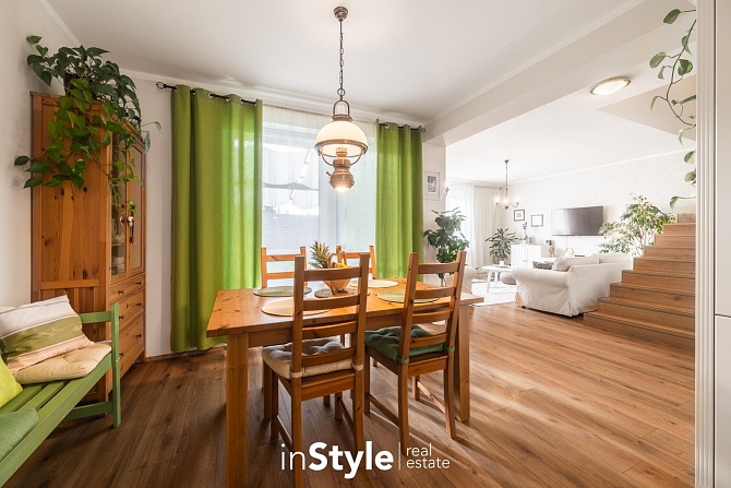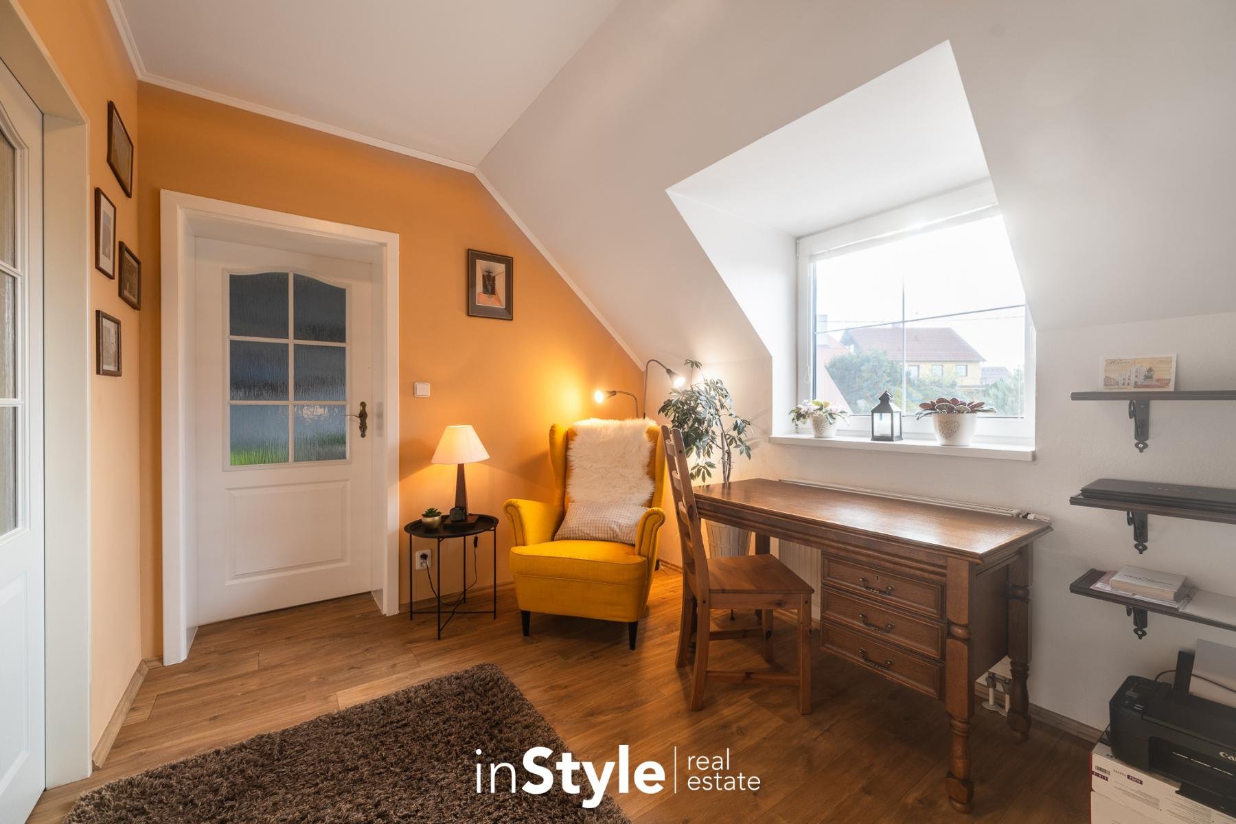 Kompaktní samostatně stojící dům, ve kterém naleznete dostatek prostoru pro celou rodinu. Tři ložnice, pracovna, dvě koupelny, úklidová místnost, garáž, přístřešek pro parkování a především kuchyňské zázemí s obývacím pokojem, který není jen nudnou klasikou. Díky otevřenému schodišti do podkroví vznikl prostor, který je skutečně vzdušný. Velká okna směrem do zahrady se pak postarala o hromadu světla. A právě výhled do zahrady bude jistě vašim oblíbeným, protože je na co koukat.