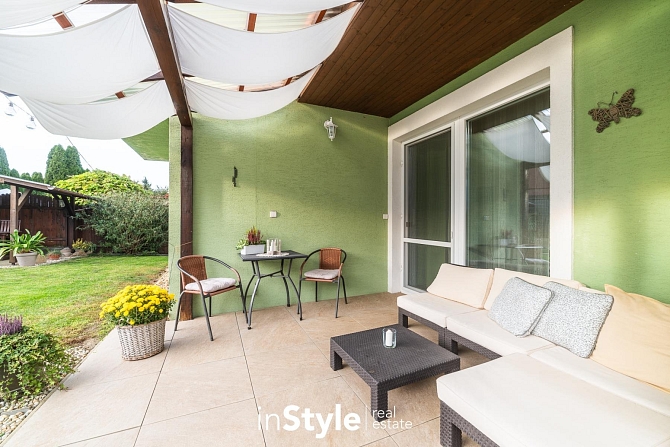 Právě nyní si můžete koupit dům, který je skvěle udržovaný a obklopuje ho kouzelná zahrada se skalkou i studnou. Velká tak akorát, abyste neběhali maraton se sekačkou, ale užili si její benefity. Pod krytou pergolou večer posedíte u skleničky dobrého vína, užijete si skvělé grilování nebo si budete užívat západ slunce z venkovní terasy.