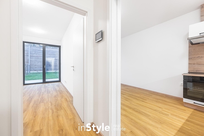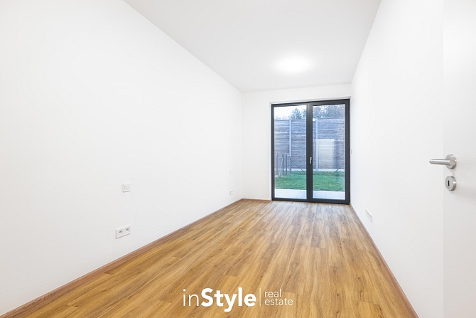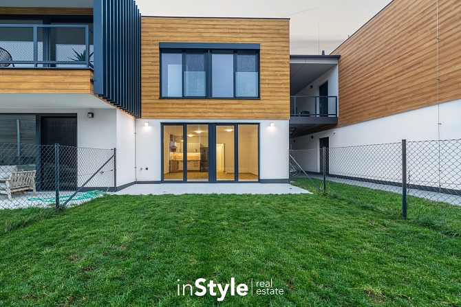Jednotka je tvořena vstupní chodbou, koupelnou se sprchovým koutem, samostatnou toaletou s technickou místností, obývacím pokojem s kuchyňským koutem a hlavní ložnicí. Z obývacího pokoje i ložnice je komfortní vstup na soukromou prostorou terasu o ploše přes 12 m2, která dále navazuje na soukromou zahradu o výměře přes 42 m2, kde budete mít navíc vlastní zahradní domek pro uložení kol či věcí na zahradu.