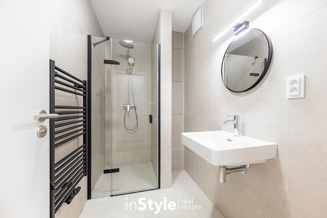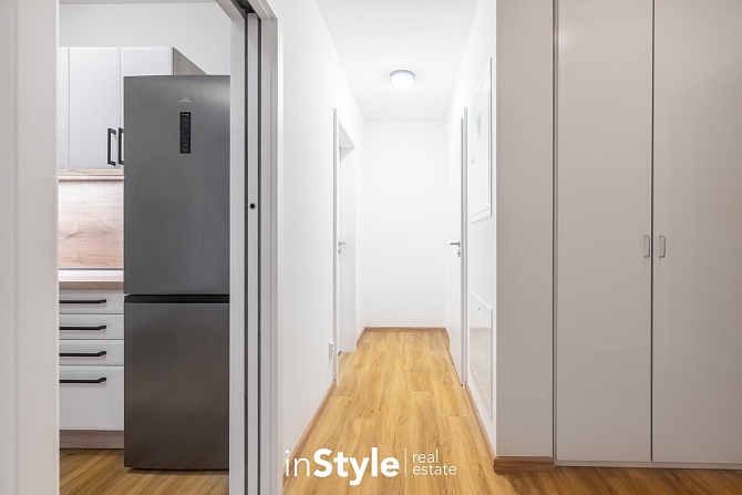 V bytové jednotce jsou použity nadstandardní materiály a vybavení, které je součástí a předmětem nájmu. Celá nemovitost nabízí teplovodní podlahové topení, prostorou kuchyní s veškerými zabudovanými spotřebiči (myčka, pečící trouba, varná deska s digestoří, lednice s mrazákem, dřez s baterií a samozřejmě LED osvětlení), koupelnové zázemí se zrcadlem, osvětlení v celém bytě a vestavnou skříň na chodbě.