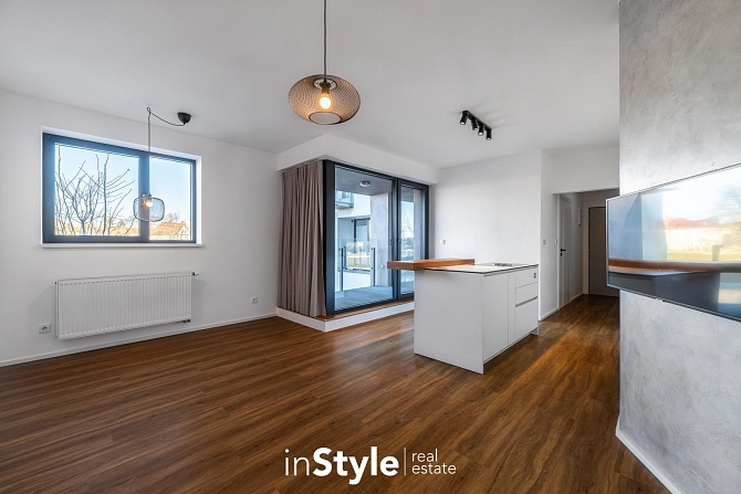 Byt o dispozici 2+kk a obytnou plochou 48,50 m2 je dispozičně řešen prostornou vstupní chodbou, koupelnou se sprchovým koutem, ložnicí a hlavním obývacím pokojem s plně vybaveným kuchyňským koutem. Z obývacího pokoje je vstup na menší lodžii o ploše 3,60 m2.